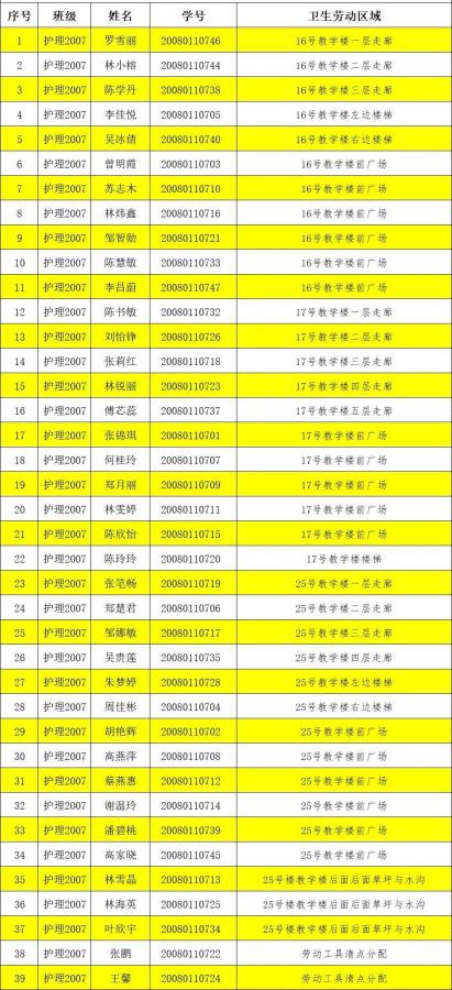 接下来公布公共区域第9周护理2007班“劳动周”劳动人员安排表,请查收~