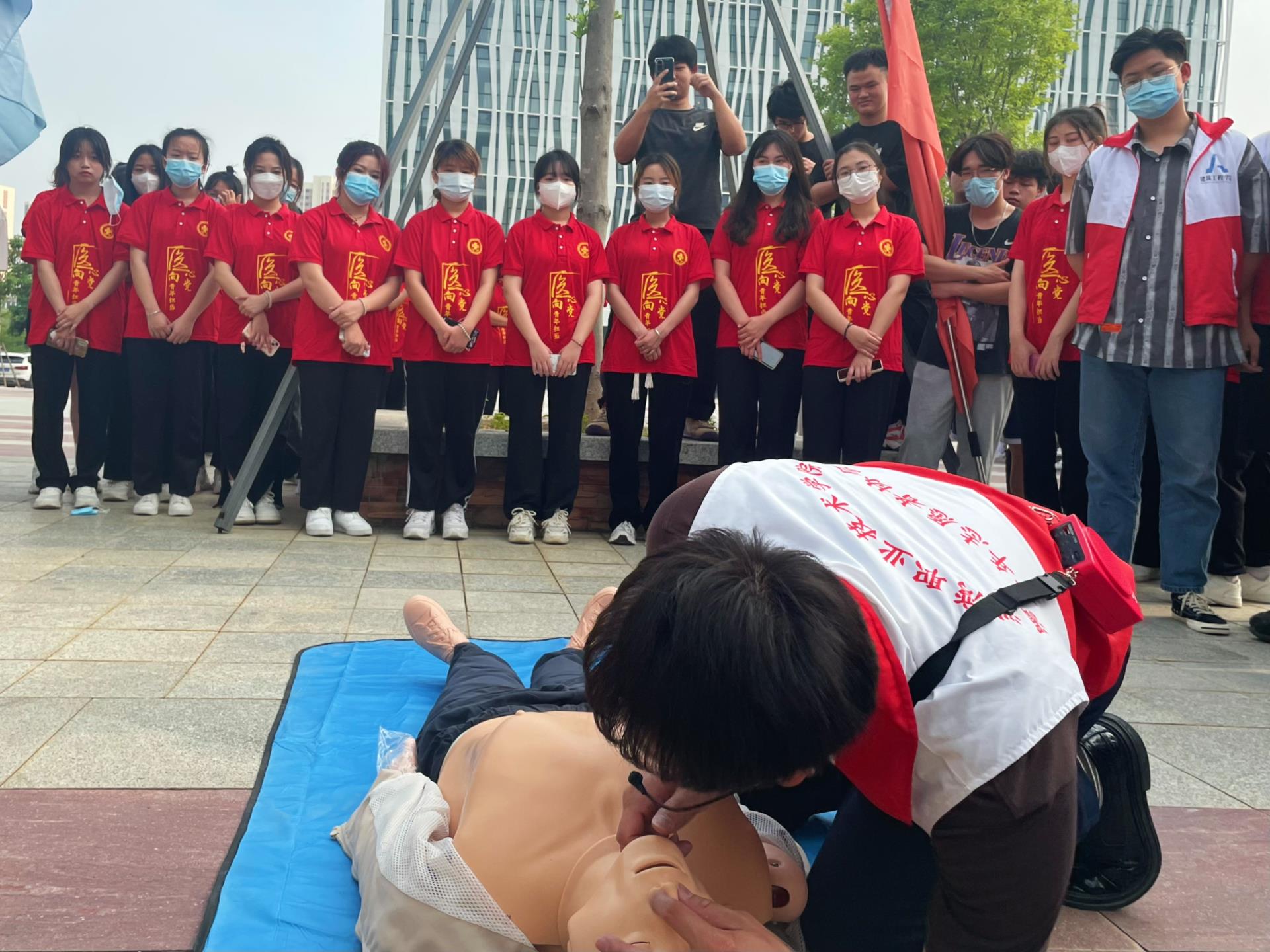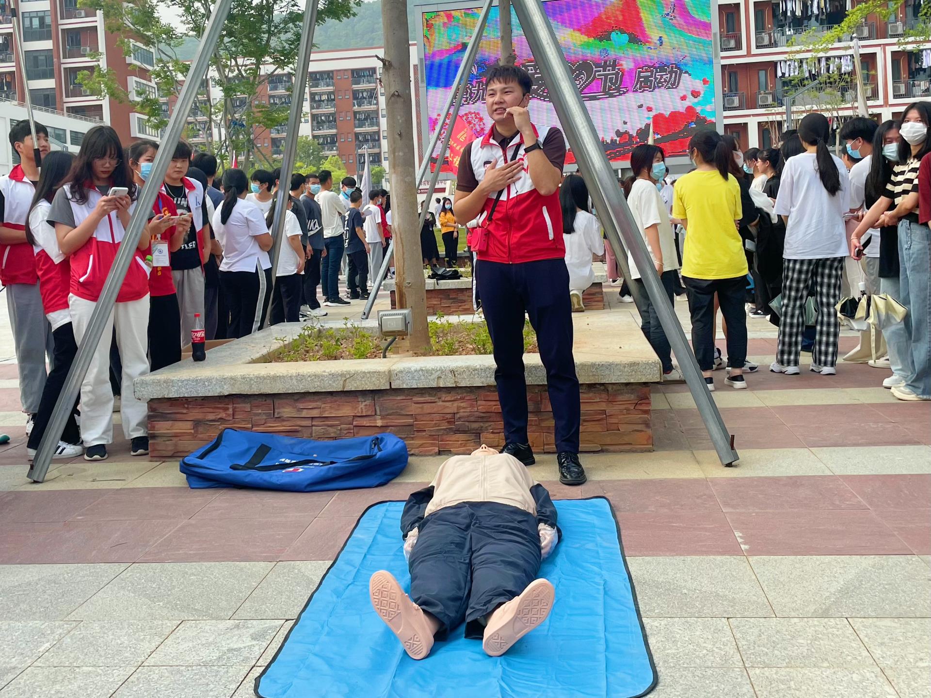 活动开始,医学健康系同学们聚精会神地学习老师们的心肺复苏演示实操;实操结束后进入第二项内容——爱心健康跑,同学们伴随青春激昂的音乐,从荔园餐厅向规划好的路线跑了起来,充分展现了同学们健康向上的青春本色。