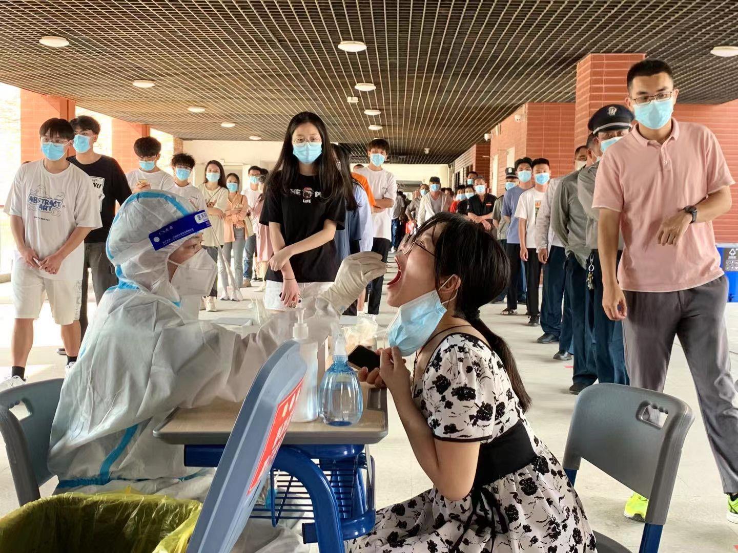 医务人员严格按照检测规范流程进行核酸采样,并做好消毒工作。整个过程井然有序、科学规范、严谨细致、快速高效,得到了师生们的充分赞许。经过医务人员、全体师生党员、志愿者共同努力下,顺利完成本次核酸检测工作。