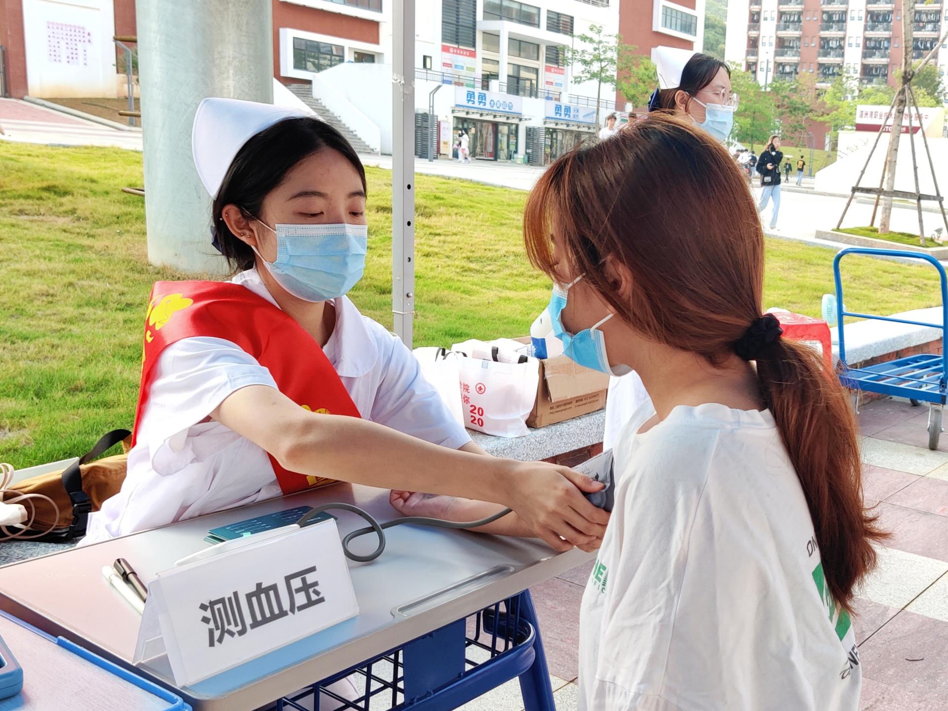 本次义诊活动主要是为同学们测血压、身高、体重、视力、握力等项目,并形成检测数据卡反馈给同学们,以便同学们对自己的身体健康状况有进一步跟踪。